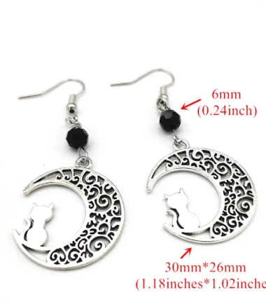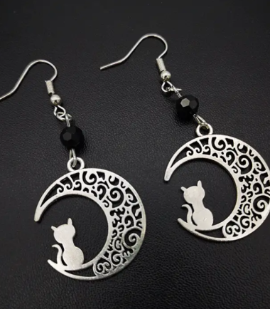 Los aretes de gato en luna combinan arte, simbolismo y estilo en un diseño encantador que refleja el vínculo especial entre los gatos y la noche. La silueta de un gato sentado en