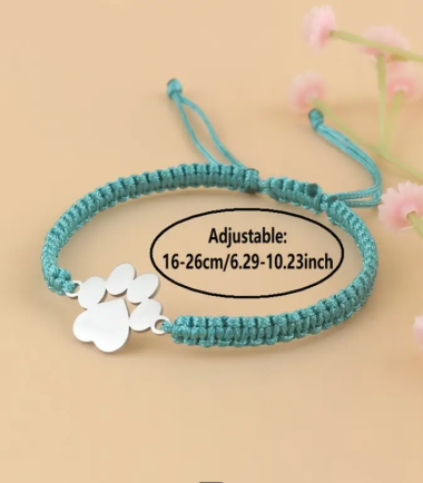Luce tu amor por las mascotas con esta elegante pulsera de macramé con dije en forma de huella. Diseñada con un estilo moderno y casual, es el accesorio ideal para dueños y amantes
