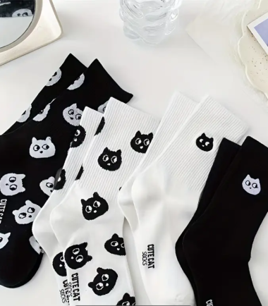Si eres amante de los gatos, estas medias no pueden faltar en tu colección. Con diseños adorables en blanco y negro, las
