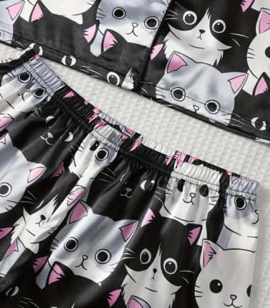 Dormir nunca fue tan divertido y cómodo 💤✨. Este pijama con estampado de gatitos está diseñado especialmente para los amantes de los felinos que desean llevar su pasión a todas