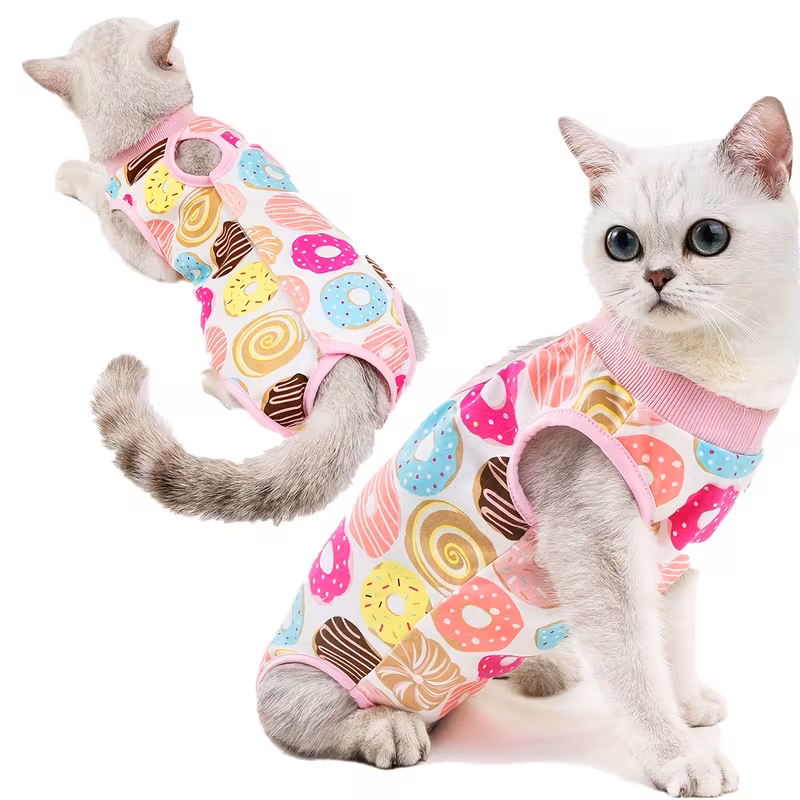 Pijama Post Operatoria para gato talla M diseño Donas