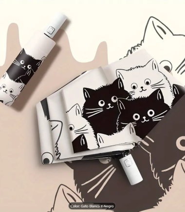 Los días lluviosos no tienen por qué ser grises y aburridos. Con el paraguas plegable “Hello Cat”, podrás mantenerte protegido mientras llevas contigo un accesorio lleno de estilo, ternura y personalidad. Su diseño único de