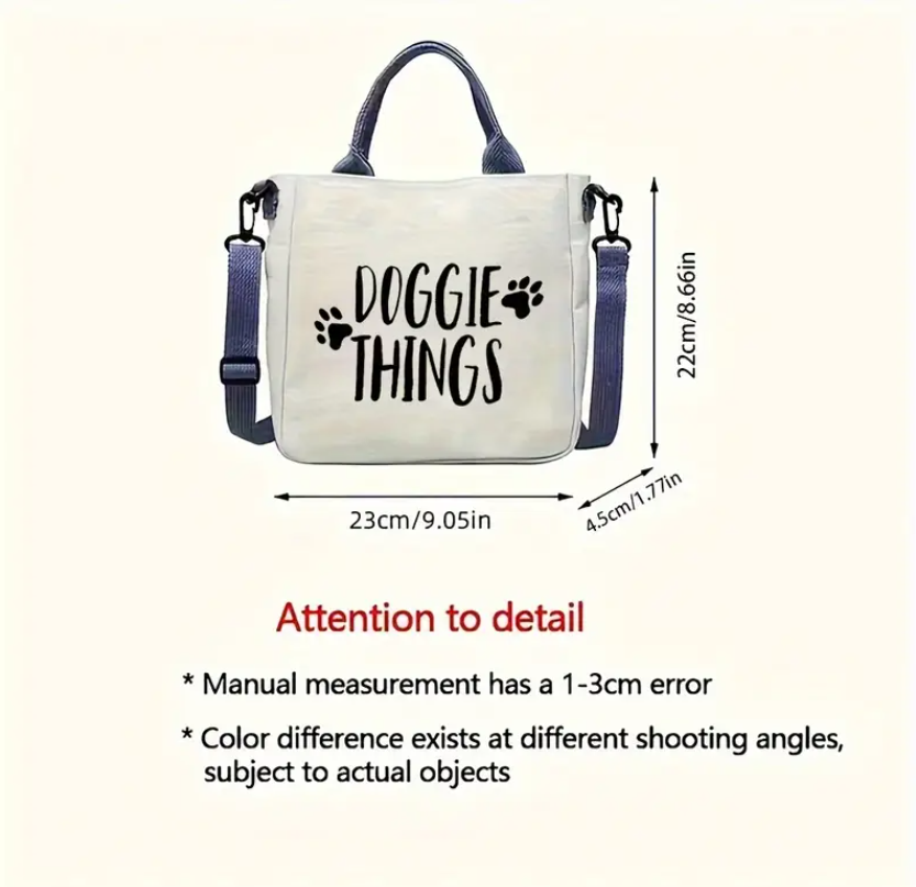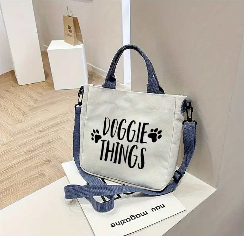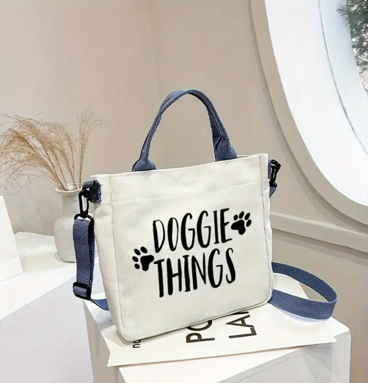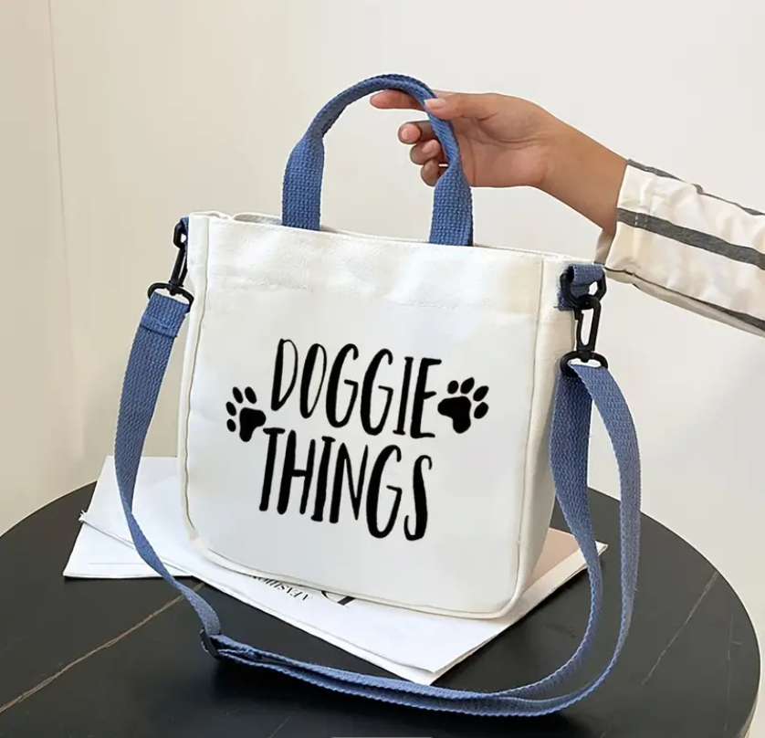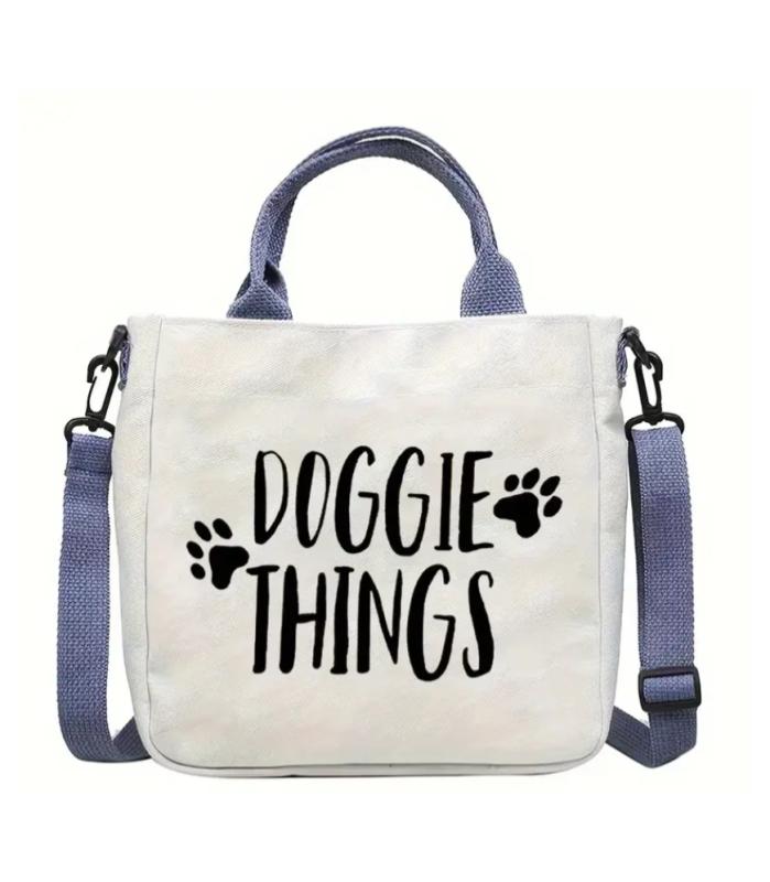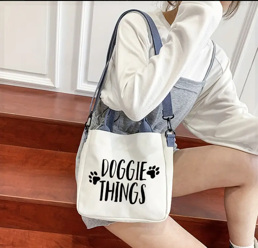Con la frase “Doggie Things” acompañada de huellitas, este bolso refleja la pasión y el cariño hacia los perros. Su estilo moderno y casual lo convierte en un complemento perfecto tanto para paseos con tu mascota como para uso diario.