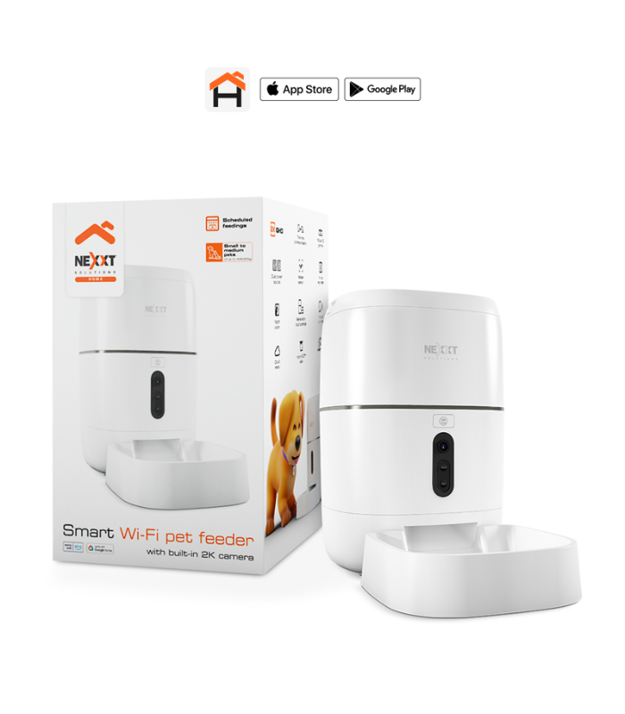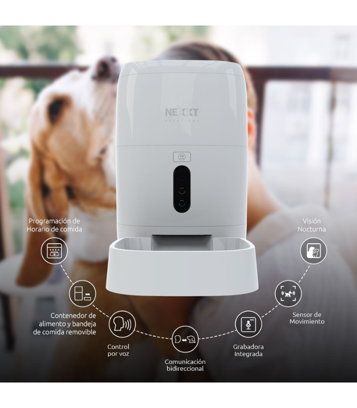 Tu mascota es parte de tu familia y merece los mejores cuidados especialmente no dejarla con hambre cuando queda sola. El dispensador inteligente de alimento para mascotas de Nexxt Solutions se encarga de todo; le puedes programar su alimento, su dieta, vigilarla y hablar con ella.