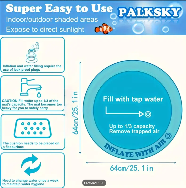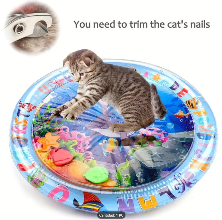 - ✅ Diseño innovador: alfombra rellenable con agua que imita un entorno marino con peces y figuras flotantes.