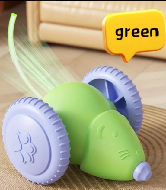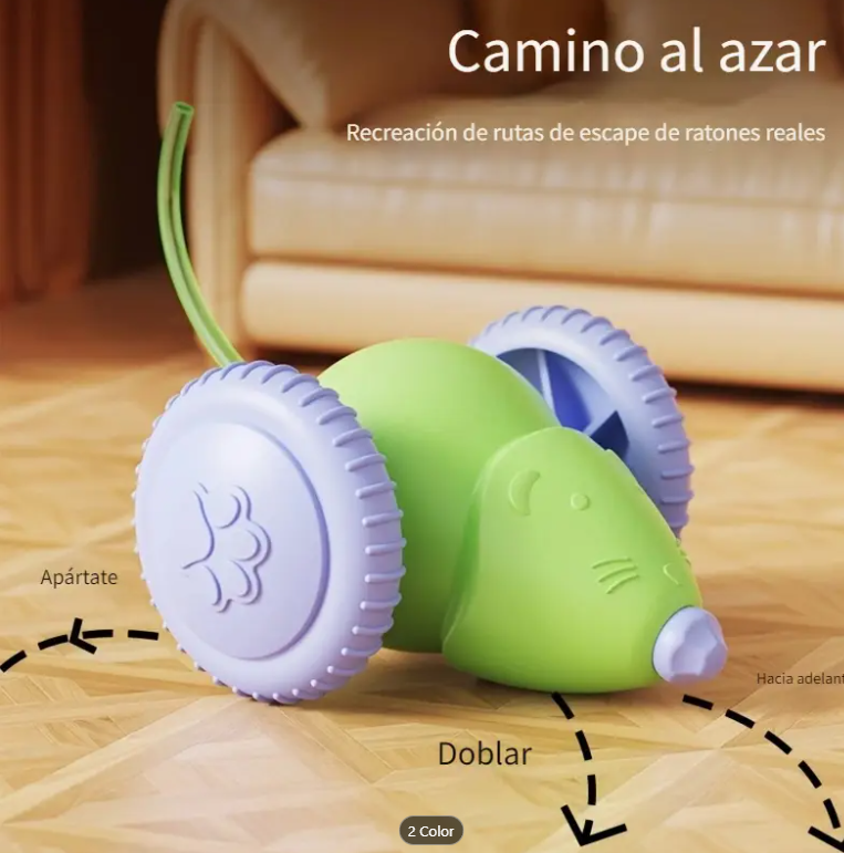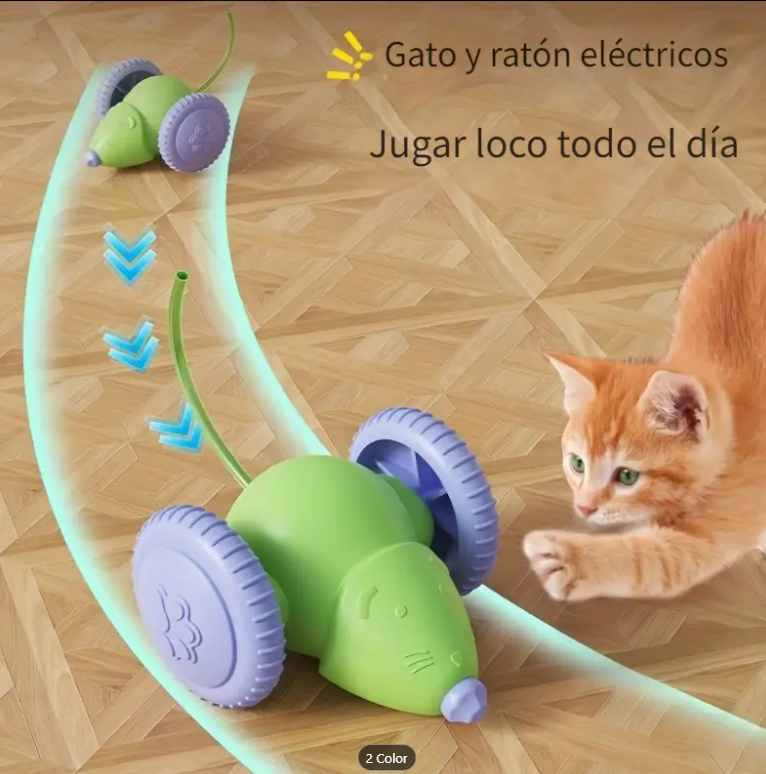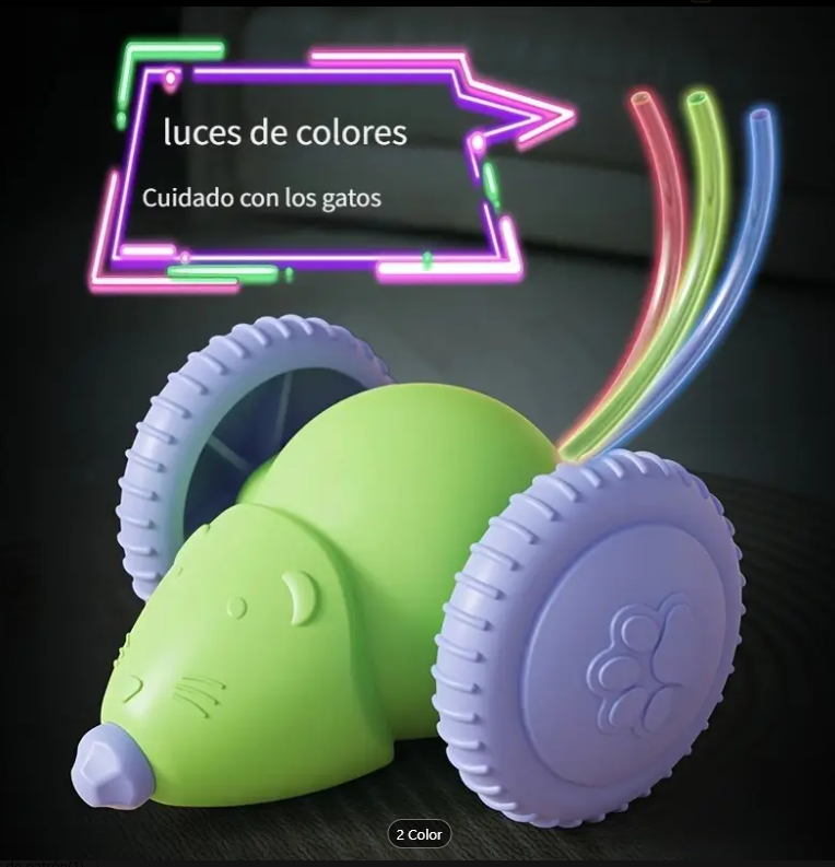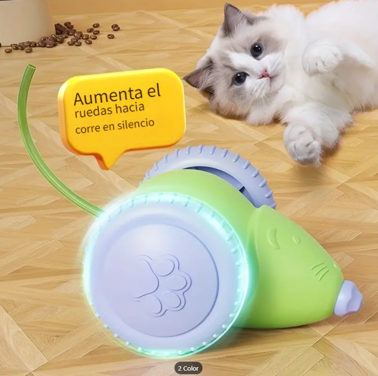 - ✅ Colores llamativos: verde con ruedas moradas, que atraen la atención del gato.
