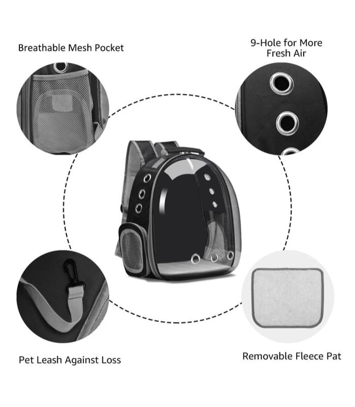 Si estás buscando una forma práctica y, al mismo tiempo, elegante de transportar a tu gato, esta mochila transportadora con ventana espacial es la opción perfecta. Gracias a su diseño transparente tipo cápsula, tu mascota podrá observar el exterior mientras se siente protegida y tranquila. Además, su estructura resistente y ventilada garantiza comodidad durante todo el viaje.