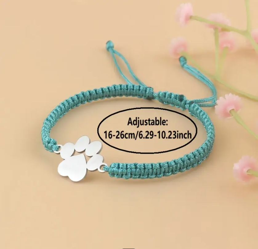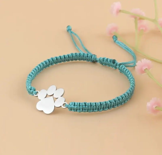 Luce tu amor por las mascotas con esta elegante pulsera de macramé con dije en forma de huella. Diseñada con un estilo moderno y casual, es el accesorio ideal para dueños y amantes de los animales que desean llevar siempre consigo un símbolo especial de sus mejores amigos peludos.