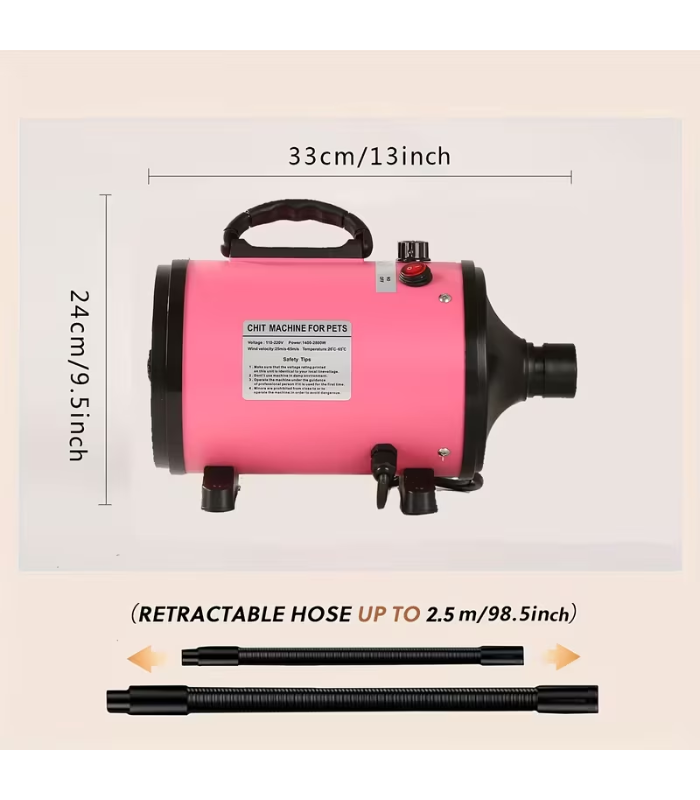 Secador grooming profesional rosa para perros y gatos