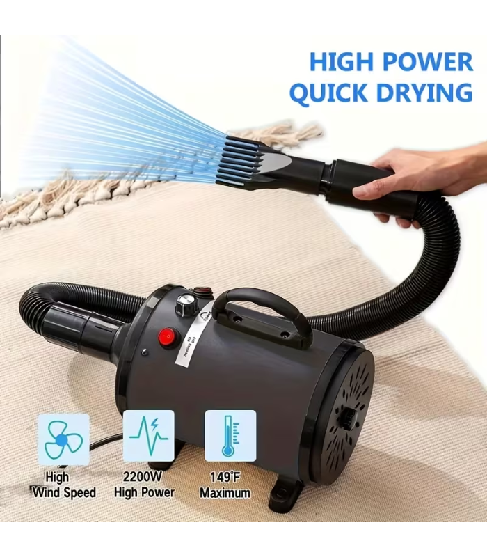 Haz del grooming una experiencia más rápida y cómoda con este secador de pelo para perros y gatos profesional, diseñado para ofrecer un secado eficiente, potente y seguro. Gracias a su motor de alto rendimiento, elimina la humedad del pelaje en menos tiempo, ayudando a mantener a tu mascota limpia, seca y confortable después del baño.