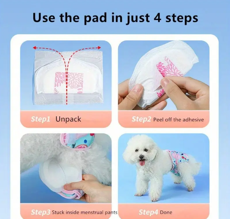 - 📐 Tamaño adaptable: se ajustan a la mayoría de los pañales o fajas sanitarias reutilizables para perros.